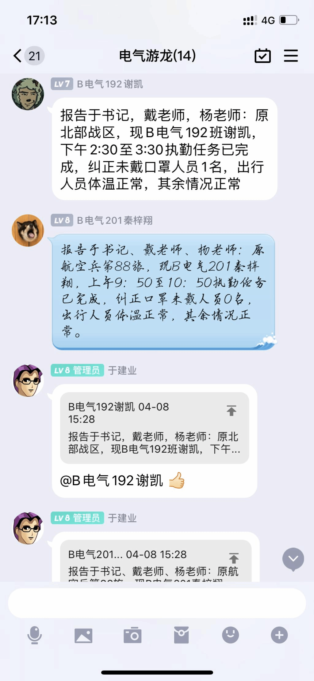 让人感动的是,在接到学生处“4月10日晚上10点前入驻校园”的通知后,学院全体专职辅导员没有一丝犹豫,毅然选择进校与学生朝夕相伴、并肩作战。召开线上主题班会,宣传防疫政策要求,关注学生思想动态;走访宿舍,了解学生学习生活状态,协助解决实际困难和需求;举办线上就业政策宣讲会,及时发布招聘信息,耐心听取毕业生的困惑和诉求,办理各类就业、升学政审材料,稳步推进考研就业工作。除此之外,核酸检测、食堂执勤 、校园巡逻等各类工作中都能看到他们的身影。他们坚持以学生为本,以真行动、真感情、真举措,不空一角、不落一人、不晚一刻,及时准确掌握信息动态,成为学校的“通讯员”、学生的“贴心人”,彰显了“学工铁军 四立铸魂”的担当与风采。