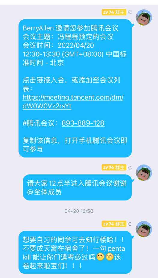 加强学风建设,举办考研经验分享会。为提高19级同学们的考研热情,增强考研信心,明确考研目标,掌握相关考研技巧,学院于2022年4月20日下午三点通过召开腾讯会议分专业举办了考研经验分享会。