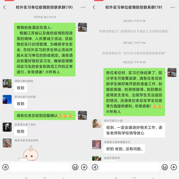 切实做好师生员工知晓疫情防控工作。通过教师QQ工作群及时传达学校、学院的疫情防控精神,积极开展疫情防控工作。切实做到教职工状况摸排到位,精准掌握每位教职工的健康、位置、行程、核酸检测等基本情况,严格实行每日疫情“零报告”制度。