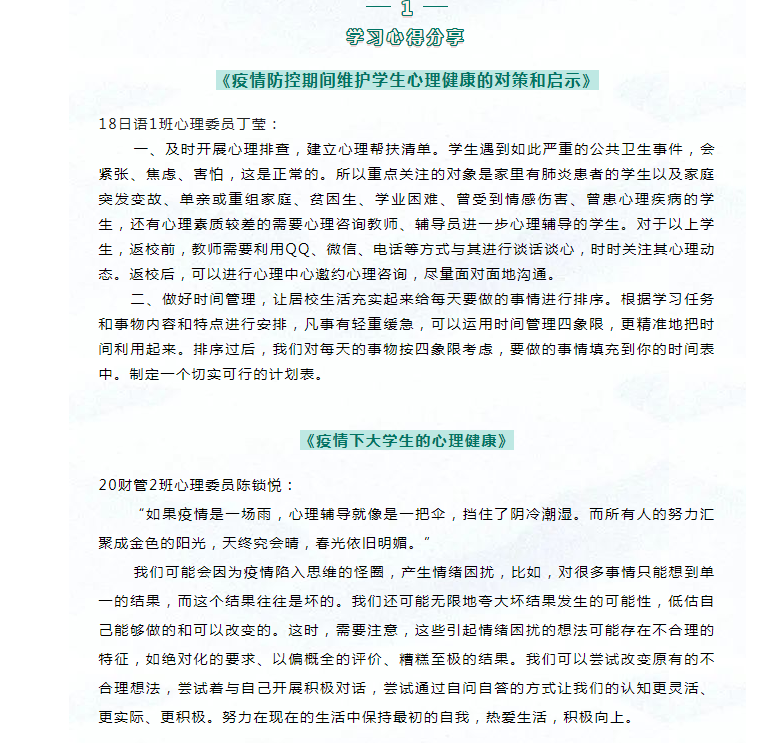 为切实帮助学生解决在疫情校园全封闭期间,线上教学效果受到影响的问题,学院采取多种方式,丰富学生学习和生活,引导学生自我教育,提升自学能力,助力学生自我发展。