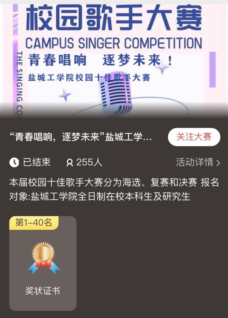 为丰富广大盐粒子的在校生活,校学生会开展“青春唱响,逐梦未来——校园十佳歌手大赛”。本次十佳歌手大赛采用线上形式,分为海选、复赛、决赛三个环节。活动一开始,便获得了全校同学广泛关注,同学们踊跃报名,在活动平台发表自己的原唱作品。目前,活动海选阶段已进入尾声,已有超400名同学通过线上报名,255位同学在活动平台发表作品,平台总点赞数(总投票数)超282518次(票)。