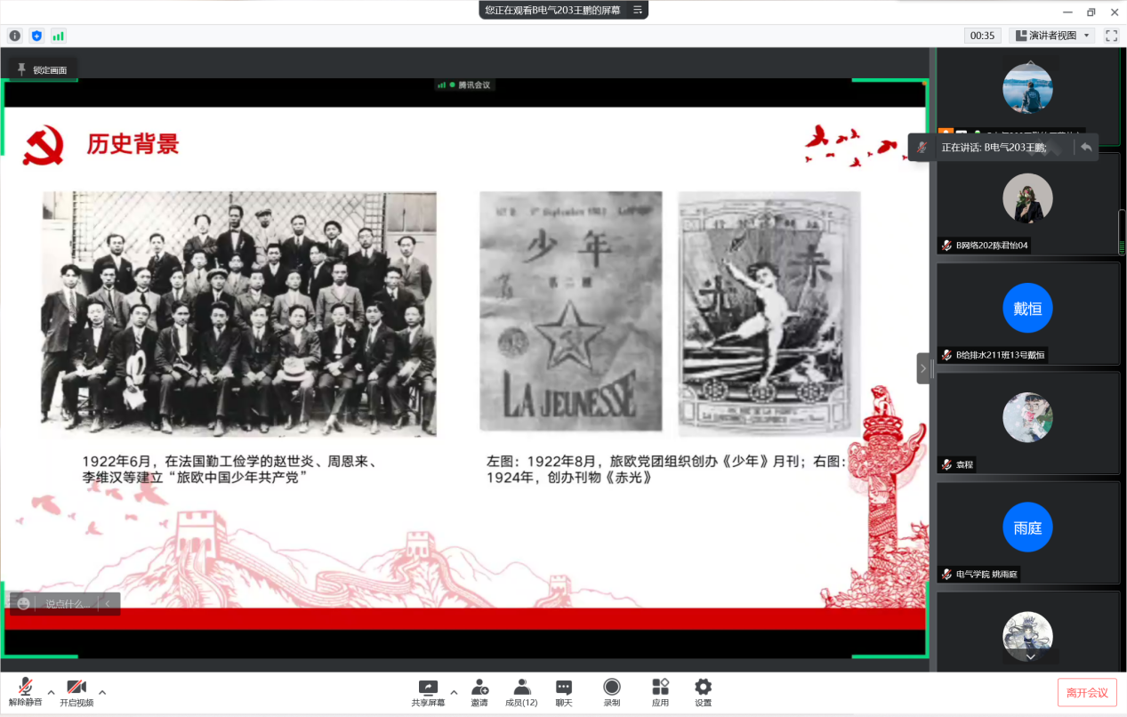 我校学生会各部门开展“青说青运史”主题活动。学生会各部门同学广泛收集我党领导下的青年运动历史资料,在部门中互相分享学习、交流学习心得,截至目前,共收集到相关历史资料80余件、青运故事50余篇。此外,学生会工作人员面向同学广泛开展主题宣讲活动,拍摄系列宣讲视频,以青年视角讲述青运故事,一同传递那份炽热情怀。