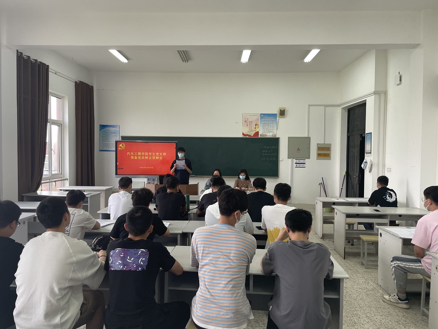 5月18日下午,汽车工程学院在机械馆B407和B412分别召开预备党员转正答辩会。答辩会分别由党总支副书记姜华和学生党支部书记孙进主持,姜华及学生党支部委员担任评委,52名预备党员参加。