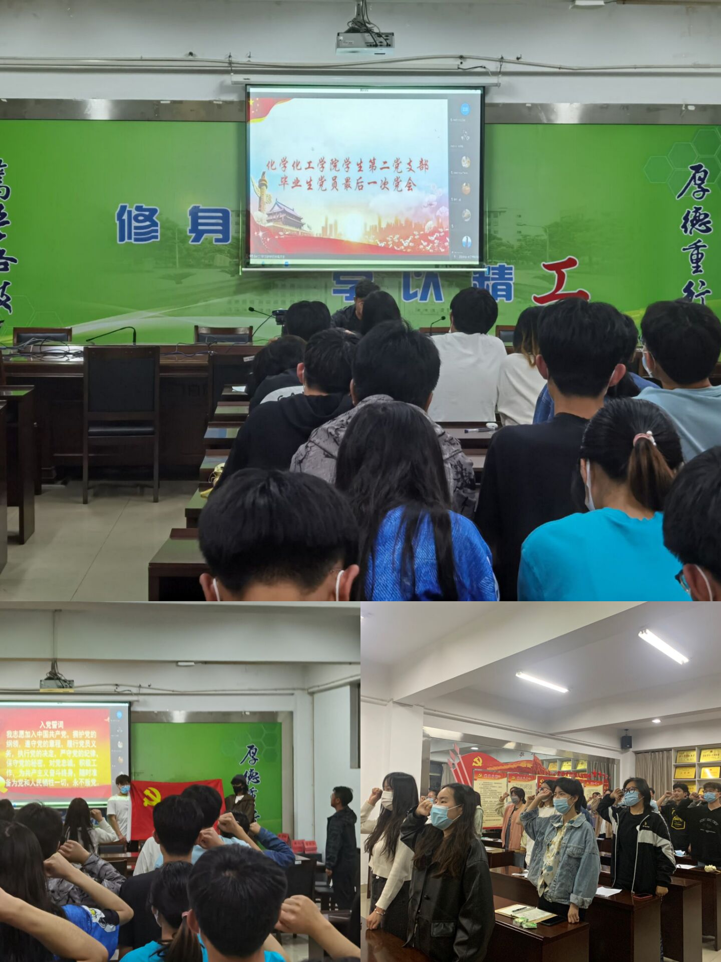 最后,由支部书记带领全体毕业生党员重温入党誓词,一起宣誓。通过重温入党誓词,使支部党员深深感受到身为党员的使命和荣耀。毕业生党员们纷纷表示,要在今后的学习和工作中以更严格的标准要求自己,努力学习、勤奋工作,保持共产党员先进性,同时,牢记党的宗旨,保持与广大人民群众的密切联系,时刻做到全心全意为人民服务,积极发挥优良传统,坚定理想信念,以更加饱满的精神和更加优异的成绩,为党的建设添砖加瓦。