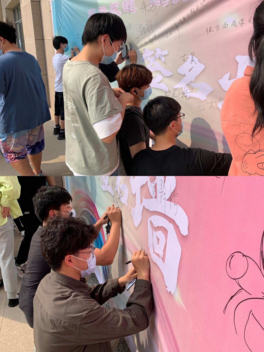 活动一经发出,便得到了同学们的积极响应。全院两百多名学生拿起画笔参与到本次涂鸦当中。活动期间,同学们不仅展示了高超的绘画设计水平,还在作品中展现了积极昂扬的大学生心理素养。涂鸦作品中不仅有对个人美好生活的期待,还有对同班好友真切的鼓励,对学校社会由衷的祝福,营造了“同心共济、向阳生长”的良好氛围。