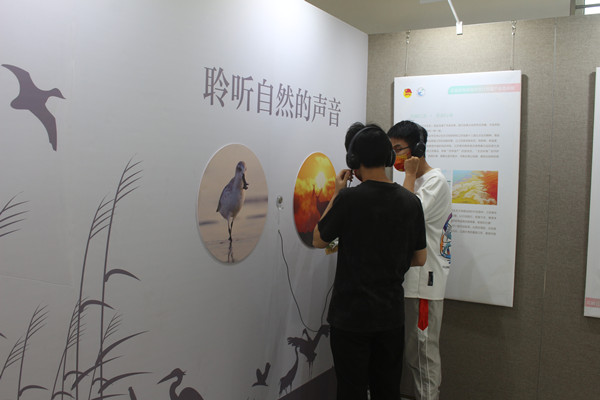 人文学院B中文191班孔维季也表示,“聆听自然的声音”是给他留下印象最深的一个展区。通过墙上的耳机,可以分别听到麋鹿和勺嘴鹬的叫声,这对于还未游玩过盐城黄海湿地的同学来说,就像与两种动物进行了一次近距离对话,有种身临其境的感觉。