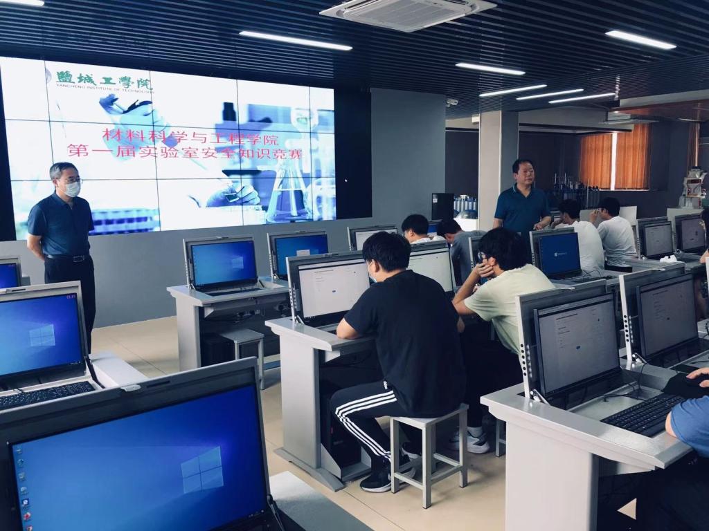 为进一步提升学院师生实验室安全意识、建立实验室安全工作长效机制,牢固树立安全发展理念,强化大学生安全防范意识,普及实验室安全知识,增强自我保护能力,营造安全、舒适、和谐的实验室环境,提升实验室安全管理和实验教学工作水平。根据实验室建设与设备管理处《关于开展盐城工学院第二届实验室安全文明月活动的通知》,6月10日下午,材料学院在建军东路校区知达楼虚拟仿真实验室举办了“材料学院第一届实验室安全知识竞赛”暨“盐城工学院第二届实验室安全知识竞赛”选拔赛。材料学院院长奚新国,副院长罗驹华出席本次活动。