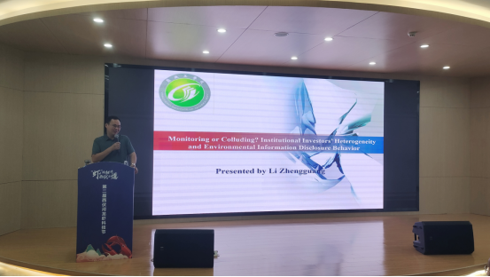 副院长李争光作《高水平论文写作经验交流》学术报告,从研究背景、研究假设、实证研究、稳健性检验,进一步研究、研究结论、创新点等方面分享题为《Monitoring or Colluding?Institutional Investors’Heterogeneity and Environmental Information Disclosure BEHAvior》的论文。他重点讲述了选题、审稿反馈意见修改等一些细节问题。他认为文章选题要有创新点,创新点是论文撰写发表的核心与关键。其次,科研需要持之以恒的精神,在高质量的期刊上投稿,投稿人的反馈意见也是提升自身写作能力和论文质量的有效途径。