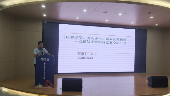 实验中心主任孙立副教授作创新创业类学科竞赛经验交流,结合学院创新创业和学科竞赛开展现状,重点介绍了在“以赛促学、以赛促教”方面的一些经验和体会。分别从学生和老师的角度,分析了大创项目成功的要素,强调了老师在项目研究、指导创新过程中的重要性,一个优秀的大创项目,需要有良好的项目背景、老师、团队做支撑,需要用充足的时间与耐心对待。