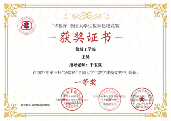近日,2022年第三届“华数杯”全国大学生数学建模竞赛获奖名单公布。我校机械工程学院研究生王昊、赵金库、张王康三位同学组成的一支参赛队伍获得研究生组一等奖,指导教师为于玉真教授。
