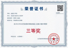 8月28日,第五届中国高校智能机器人创意大赛决赛在浙江举行,我校机械优集学院大一学生陈怡同学作品(周耀武、刘道标指导)《冬加湿夏驱蚊音响机器人》获得江苏赛区一等奖、全国三等奖;顾雨婷同学作品(刘道标指导)《全自动速食机器人》、吴伯焘同学作品(郁倩指导)《智能移动垃圾桶》、吴周宇同学作品(周耀武指导)《智能鞋柜》获得江苏赛区三等奖。