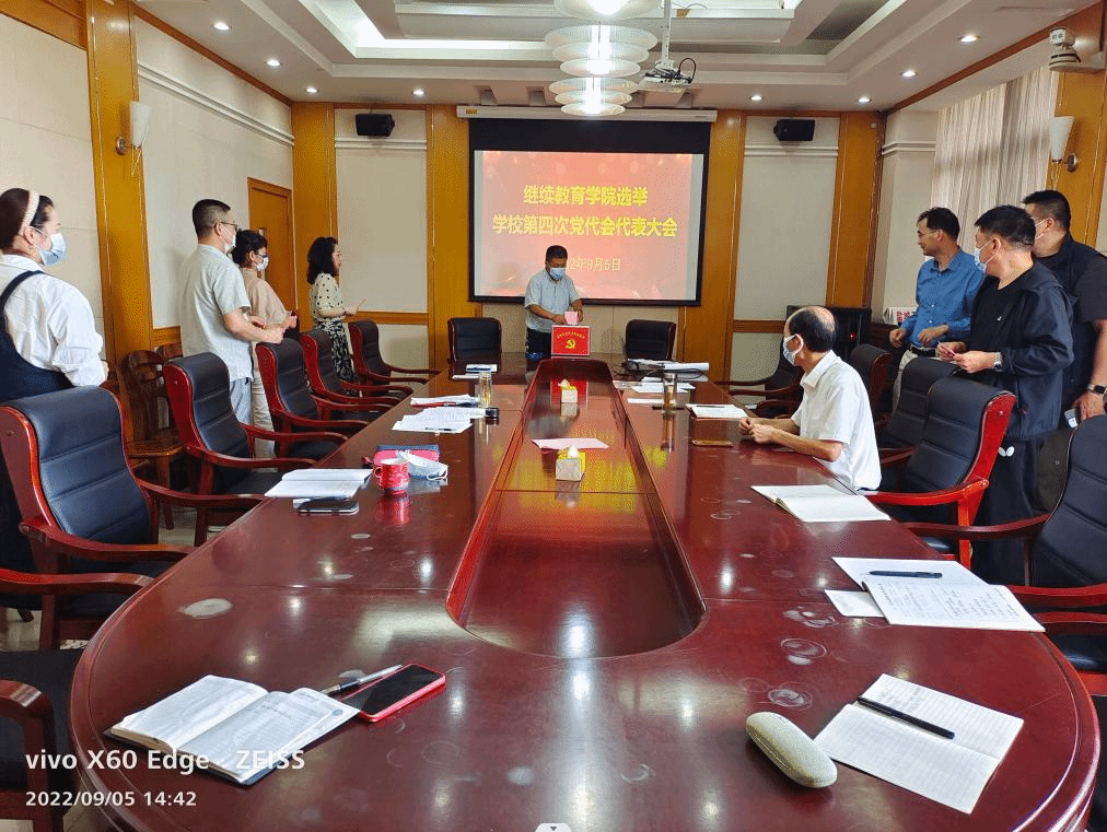 9月5日下午,在北校区图书馆301会议室,继续教育学院党总支召开党员大会,选举出席学校第四次党代会代表。大会由学院党总支书记陈志华主持,全体11名党员参会。