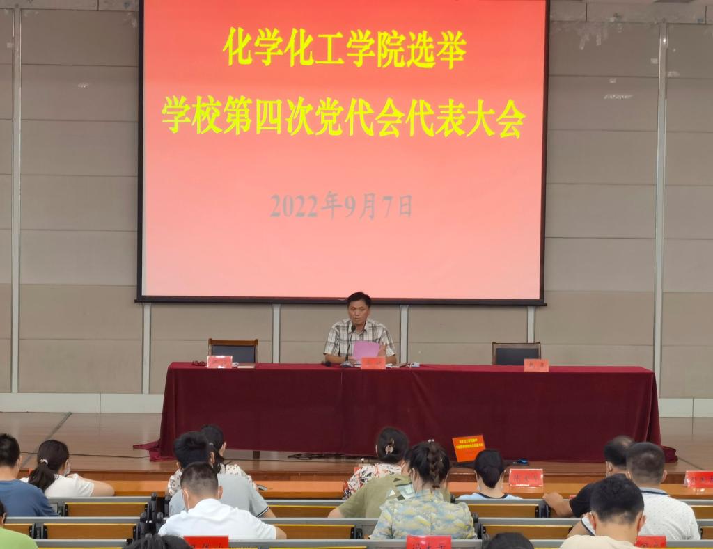 根据校党委《关于中国共产党盐城工学院第四次代表大会代表选举工作的通知》(盐工委〔2022〕26号)要求,9月7日下午,化学化工学院党委在建军东路校区化工楼报告厅召开全体党员大会,选举学院出席校第四次党代会代表。大会由院党委书记高健主持,学院全体正式党员参加。