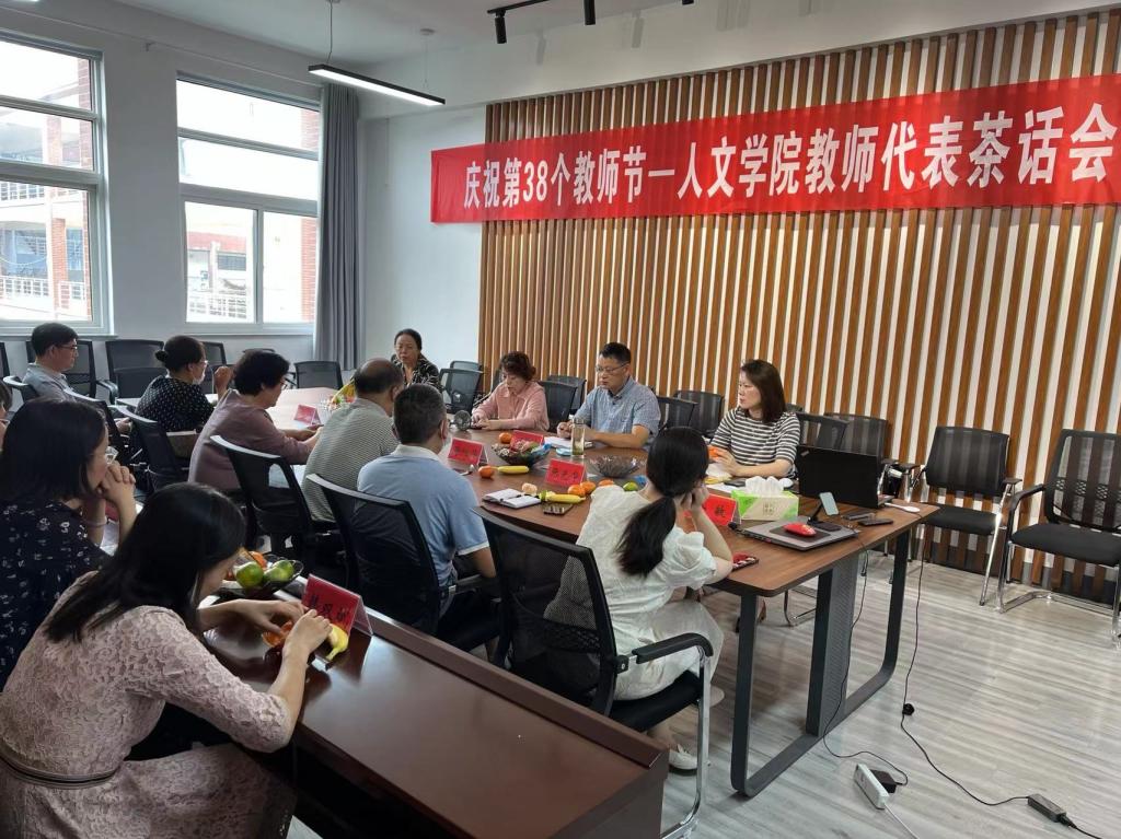 9月8日下午,在第38个教师节即将到来之际,人文学院以“迎接党的二十大、培根铸魂育新人”为主题在希望大道校区仁和楼A302举办教师代表茶话会,党总支书记何登溢、院长周晓燕、副院长陶文俊出席,荣休老教师、专业系主任、新引进博士、新入职辅导员和优秀教师代表近20人参加,党总支副书记、分工会主席姚爱华主持。