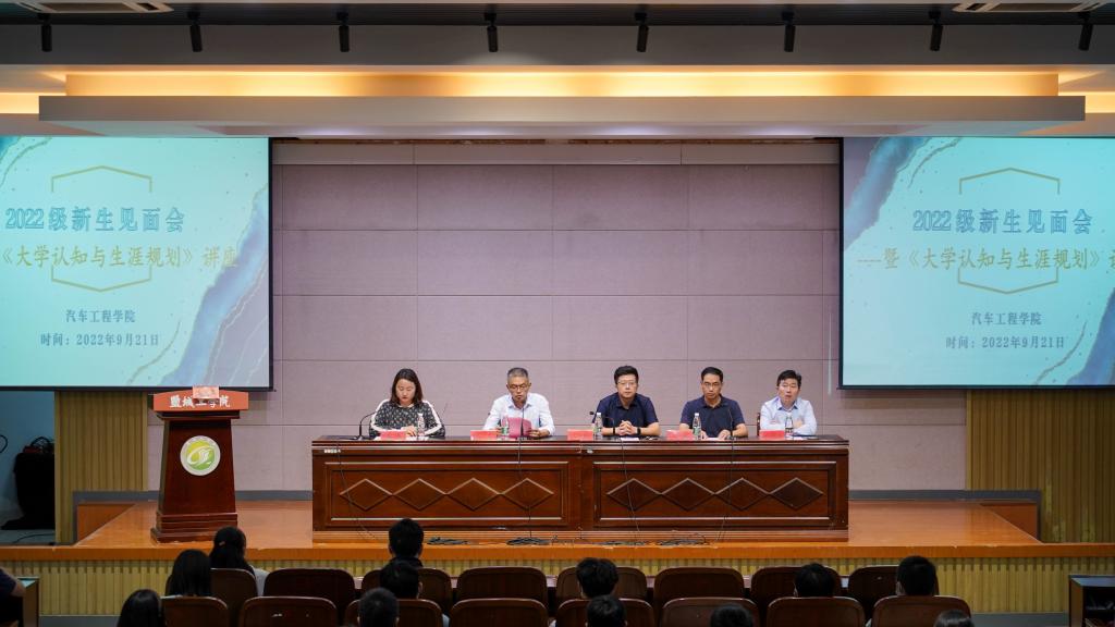 9月21日,汽车工程学院在南校区机械馆A321举行2022级新生见面会暨《大学认知与生涯规划》讲座,学院党总支书记杨军、院长刘玮、副院长熊新、副书记姜华、院长助理郑竹安、学院学工团委负责人、新生辅导员及2022级新生参加,会议由姜华主持。