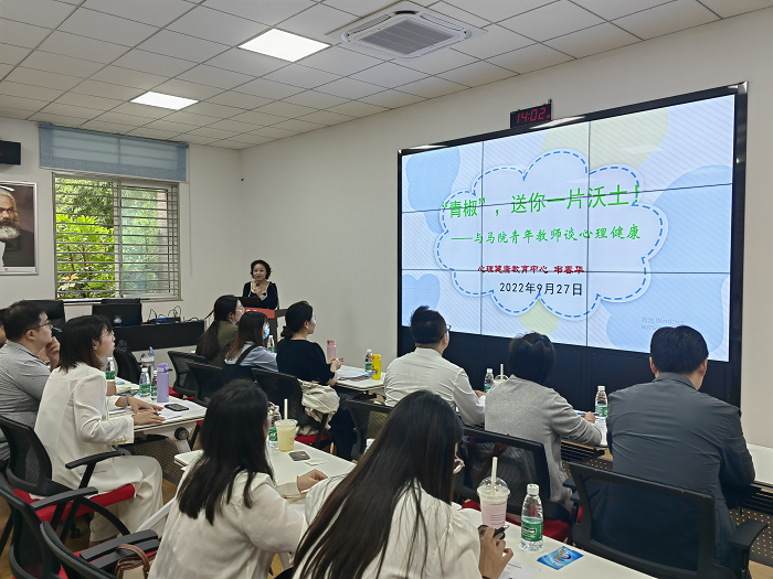 为有效缓解青年教师的心理压力,积极适应大学教师的角色身份,提高青年教师心理健康素质,营造和谐的工作环境,9月27日下午,马克思主义学院在希望大道校区博学楼B109室举办“‘青椒’,送你一片沃土!——与马院青年教师谈心理健康”专题讲座。此次活动特邀学校心理健康教育中心主任韦春华老师主讲,马克思主义学院20多位青年老师参加培训交流。副院长赵迎华主持。