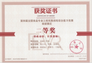 近日,2022年全国食品专业工程实践训练综合能力竞赛结果公布,海生学院食品科学与工程专业陈小冬、李唯、余晓红老师指导,陈星延、李梦月和于陈凤等3位学生经过校赛选拔、暑期多轮次集训、虚拟仿真能力竞赛和理论考核竞赛等多轮角逐竞争,最终获得大赛南部赛区二等奖。至此海生学院已连续四年在该赛事获奖。