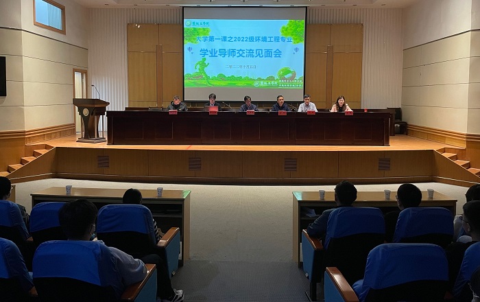 10月5日下午,环境学院在建军东路校区图书馆报告厅召开2022级环境工程专业新生学业导师见面会。学院院长严金龙,院党总支书记陈阳,副院长陈天明、杨百忍,环境工程系全体专业教师,新生辅导员徐浩以及2022级环境工程专业全体本科生参加见面会。会议由院党总支副书记周政主持。