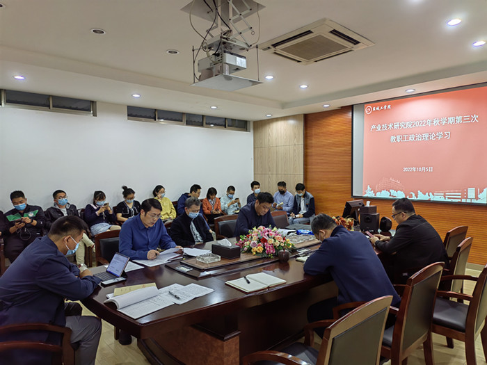 10月5日下午,产业技术研究院在建军东路校区知达楼AE209会议室组织开展2022年秋学期第三次教职工政治理论学习。党总支副书记、纪检委员崔振虎主持会议,研究院全体教职工参加。