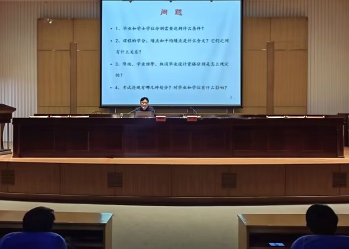 为帮助2022级新同学尽快适应大学校园学习生活,尽早清晰学业规划、学习目标,李爱国从学生学籍管理规定、课程学习、学生毕业条件、学位授予办法、学业预警管理办法、学生考试违规处理办法等方面向同学们做详细解读,希望同学们能够尽早打算,找准学习方向,严格遵守管理规定,诚信考试,绝不碰触学生考试红线,在大学校园学有所获。