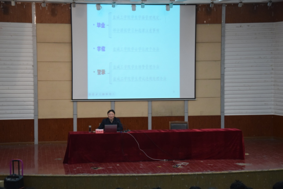 李爱国在讲座中分别对课程考试与成绩记载,补考重修流程,取消考试资格情况,特殊情况缓考申请,休学与复学流程,毕业设计资格审查要求,少数民族课程细则,考试违规处理,毕业条件和取得学士学位需要到达的条件等方面进行了详细的阐述,并为学生们分析了考试作弊的直接成本和潜在成本。李爱国希望广大同学们严格遵守学校学籍管理规定,树立法治意识,大学四年努力学习,取得让自己满意的成绩单。