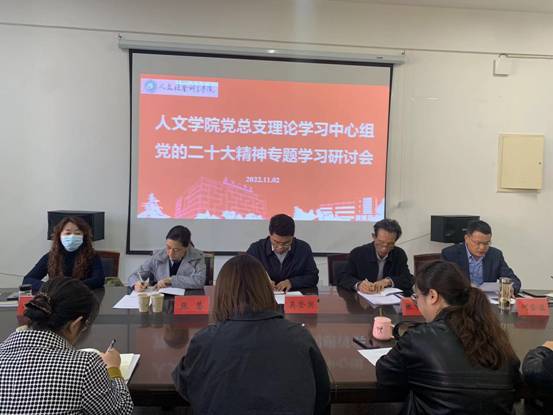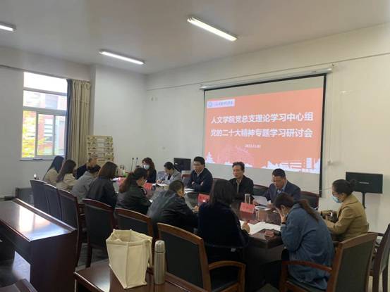 11月2日上午,人文学院党总支理论学习中心组在希望大道校区仁和楼A304会议室召开党的二十大报告精神专题学习研讨会,校纪委副书记吴登国,校党委第二巡学旁听组组长张中成、成员张慧到会指导。会议由学院党总支书记何登溢主持,学院党总支理论学习中心组全体成员参加。