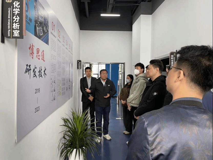 江苏博思通新材料有限公司董事长、总经理于浩对唐浩一行到来表示欢迎,并介绍了近年来企业的发展状况、业务领域以及人才需求等情况。他指出,江苏博思通新材料有限公司发展快、势头猛,人才需求迫切,期待与学院进一步加强校企合作力度,为企业输送优秀人才。