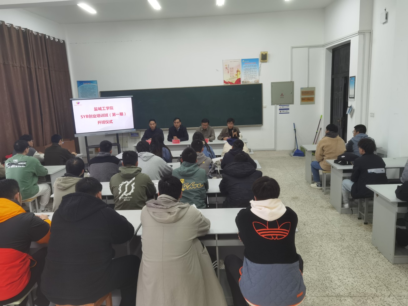 陈志华在会上致辞,祝贺盐城工学院第一期SYB创业培训班的成功举办,全面地分析了大学生创业面临的优势和挑战。他希望学员充分利用好为期10天的培训班,增强自己的创业能力。