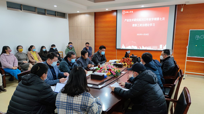 11月30日下午,产业技术研究院在北校区知达楼AE209会议室组织开展2022年秋学期第七次教职工政治理论学习。学院党总支书记、院长严金龙主持会议,研究院全体教职工参加。