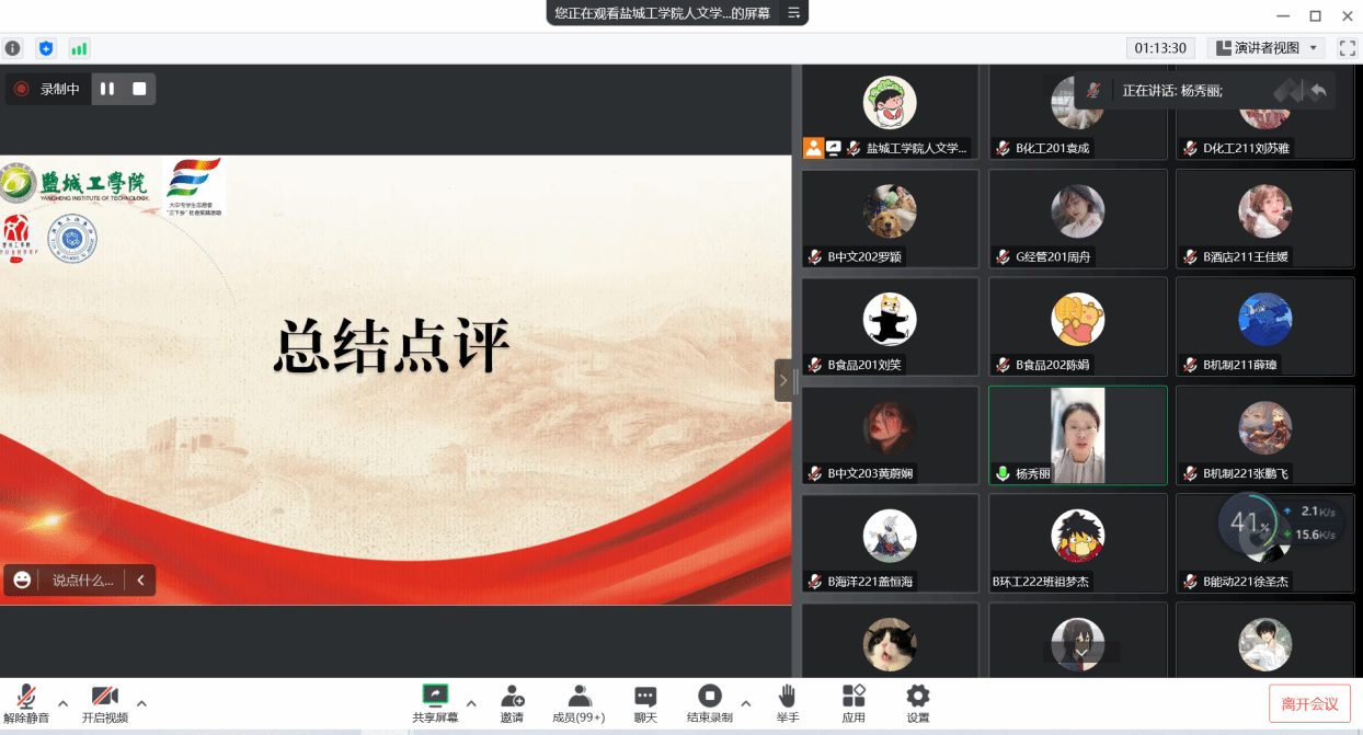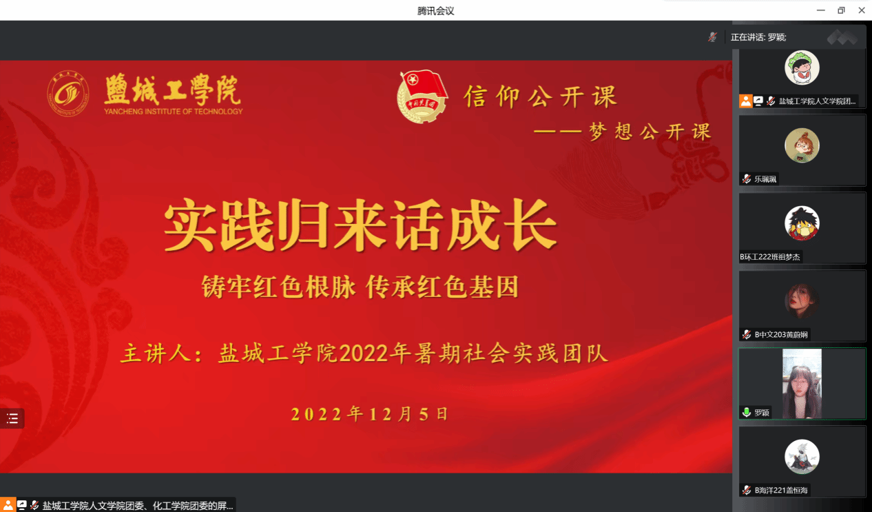 12月5日,盐城工学院“实践归来话成长”2022年暑期社会实践交流分享会于腾讯会议平台成功举办。本次活动由校团委主办,化学化工学院团委、人文社会科学学院承办。校团委书记杨秀丽、校团委实践创新部部长渠颜颜、化学化工学院团委副书记王灿星、人文社会科学学院辅导员乐珮珮参加分享会,各二级学院学生代表、2022年校级暑期社会实践团队成员360余人线上观看直播。