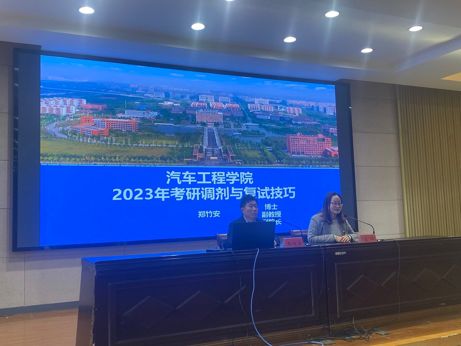 3月7日下午,汽车工程学院在南校区机械馆报告厅召开2023届毕业生考研复试调剂指导会,会议由学院党总支副书记姜华主持,院长助理郑竹安主讲,毕业班辅导员及2023届考研同学参加。
