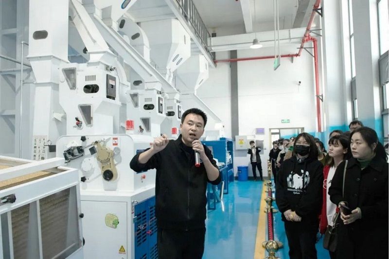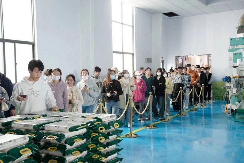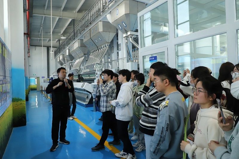 海生学院师生一行先后参观了芦笋基地、展示中心、大米包装车间、大米加工车间、烘干车间、培训中心。在加工车间,技术人员向大学生们讲解了大米生产工艺流程,引起了大学生们的浓厚兴趣,期间我校师生还详细了解了集团产业发展状况。参观结束后,双方签订了就业实习基地共建协议,将大地禾农场作为盐城工学院大学生实习基地,双方将共同为社会培养高级专业技术人才和复合型“新农人”专业人才。