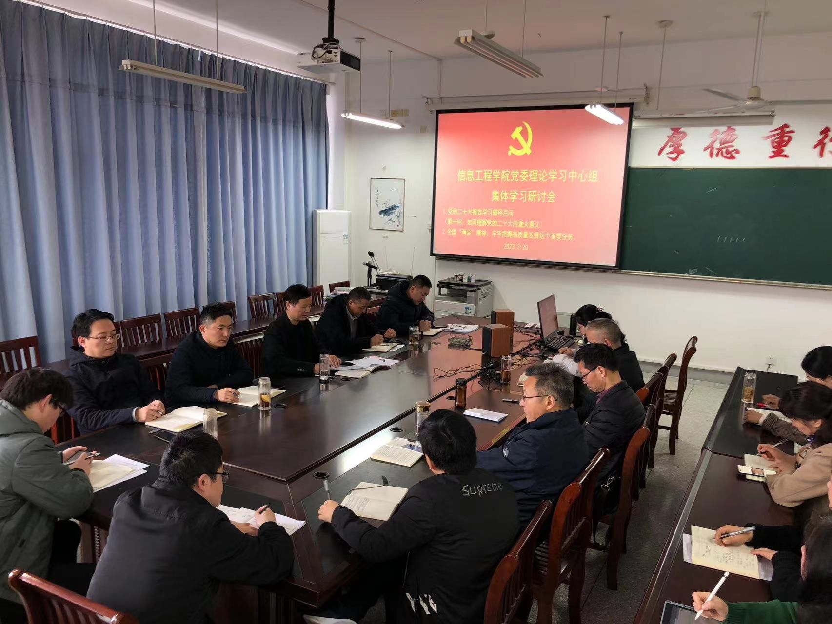 为深入学习贯彻党的二十大和全国“两会”精神,3月20日上午,信息工程学院党委组织理论学习中心组全体成员集中学习《党的二十大报告学习辅导百问》和全国“两会”精神,深入领会党的二十大精神和全国“两会”精神的丰富内涵、精神实质和重大意义。