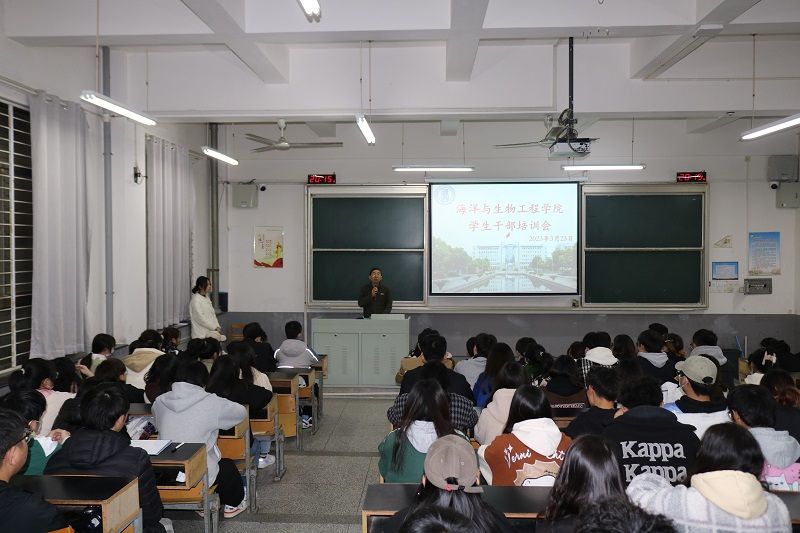 为进一步提高学生干部服务意识,强化学生干部队伍建设,3月23日晚,海生学院在体知楼105召开春学期学生干部培训会。海生学院党总支书记高留才、副书记毕蕾出席,学工办负责同志、辅导员老师及学院学生干部近200人参加。