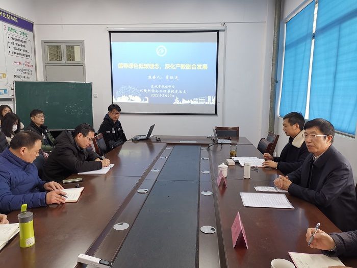 为深入践行习近平生态文明思想,落实习近平总书记关于碳达峰碳中和重要论述精神,将绿色低碳理念根植于产教融合实践过程中,3月29日下午,在北校区大学生活动中心三楼会议室,环境学院邀请原校党委常委、副校长董跃进教授作题为《倡导绿色低碳理念,深化产教融合发展》的专题讲座。学院党总支书记陈阳主持会议,全院教职工参加。