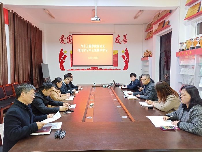 3月30日,汽车工程学院党总支理论学习中心组开展集体学习研讨。会议由学院党总支书记杨军主持,学院党总支理论学习中心组全体成员参加学习。