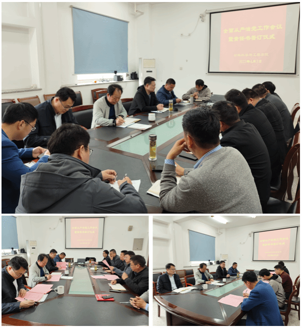 会上,学院领导分别与各科室负责人、专业系主任签订了《全面从严治党与党风廉政建设责任书》《意识形态和政治安全工作责任书》《安全稳定工作责任书》。