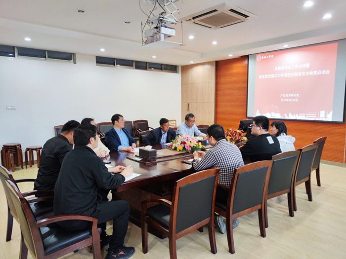 为落实教育部2023年高校实验室安全检查工作会议精神,全面了解研究院实验室安全工作现状,督促相关责任实验室对隐患进行闭环整改,4月20日下午,产业技术研究院召开实验室安全工作会议暨落实教育部2023年高校实验室安全检查启动会。院党总支书记、院长严金龙,院党总支副书记、纪检委员崔振虎,副院长姜瑞雨,分析测试中心副主任陈林,党政办负责人,实验室安全管理负责人,教师代表等参加。