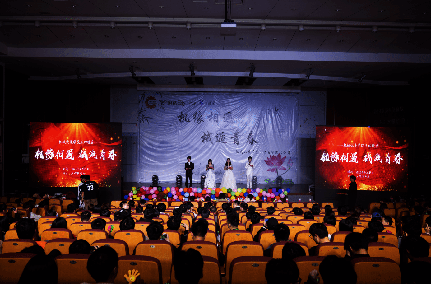 在“五四”青年节即将来临之际,为深入学习弘扬“五四”先驱崇高的爱国理想和革命精神,集中展现盐工青年师生的时代风貌,4月21日晚7点,机械优集学院在希望大道校区五四报告厅举办“机缘相遇,械逅青春”五四晚会,院党委副书记马晓英、学工办副主任程云庆、新生辅导员和全体大一新生等600余人参加了此次活动。