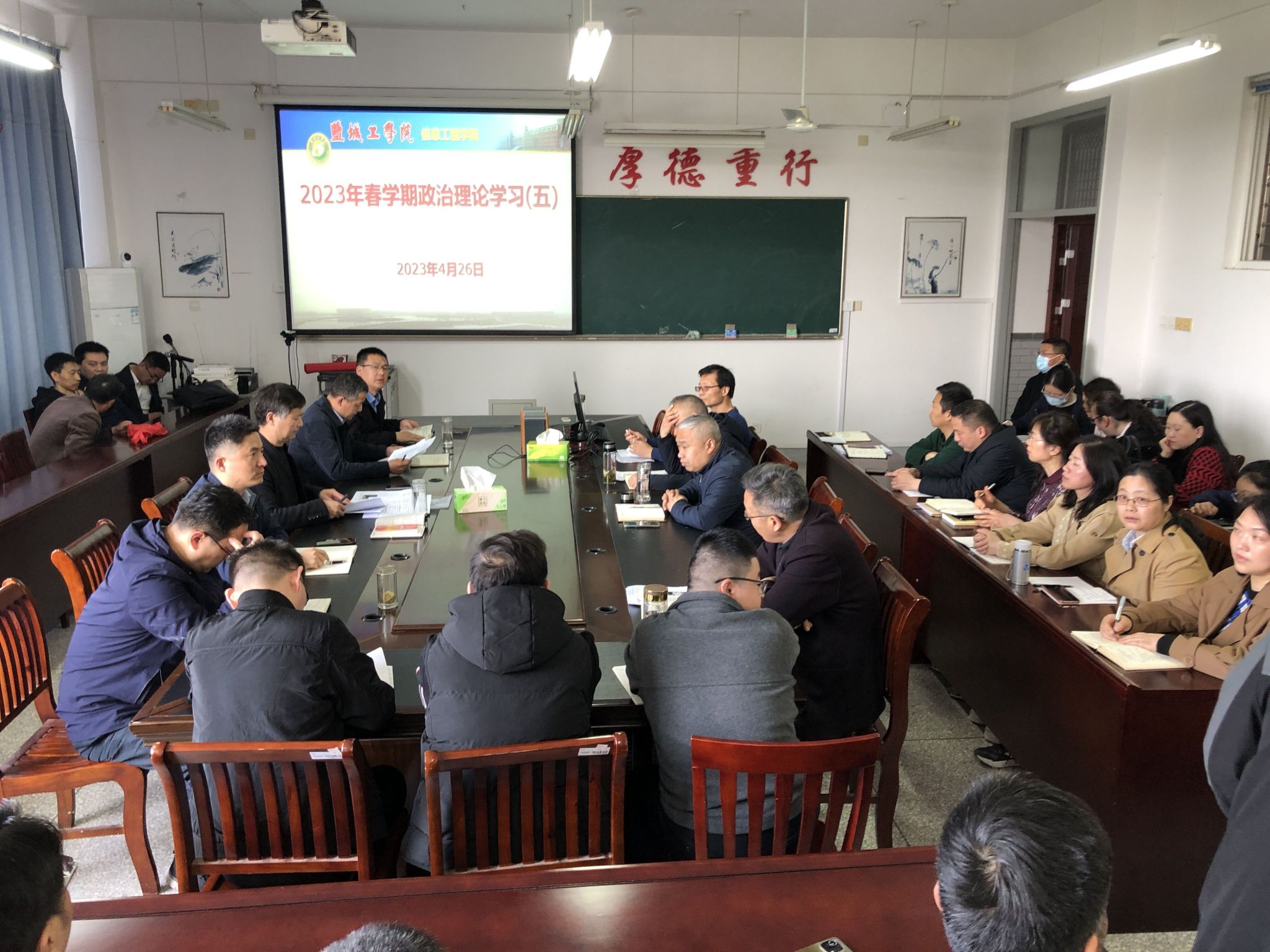 4月26日下午,在希望大道校区怀德楼B410会议室,信息学院组织开展2023年春学期第五次教职工政治理论学习。学习活动由院党委书记王爱军主持,全体教职工参加。