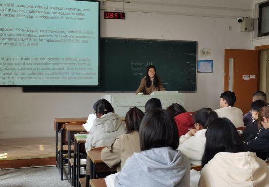 本次课堂教学检查重点围绕学生上课出勤率、学生到课学习状态、课堂教学秩序等情况,抽取进入学院教师赵云峰《食品贮运学》、苏建辉《食品科技英语》的课堂进行随堂听课督查。检查结果发现,教师讲课精神饱满,备课充分,理论联系实际,以案例、图片等启发引导学生,课堂氛围和学生反映较好。