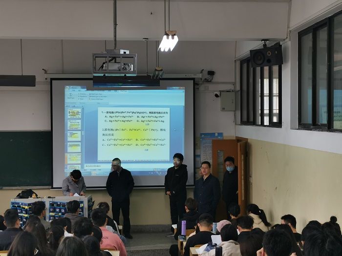 4月24日上午,化学化工学院党政领导班子全体成员、学工办主任、教科研办主任一行7人,深入课堂检查教学秩序。本次共抽查了6位教师主讲的理论课课堂教学情况,主要检查教师到岗、学生出勤、课堂纪律、学生手机管理等情况。整体看来教学秩序良好,无迟到早退现象,教师备课充分、授课认真,学生精神饱满、课堂气氛活跃,充分体现了化学化工学院师生的优良风貌。