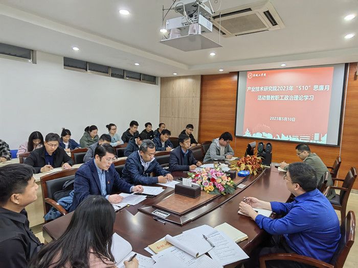 5月10日下午,产业技术研究院在北校区知达楼AE209会议室组织开展“510”思廉月活动暨教职工政治理论学习。研究院党总支书记、院长严金龙主持会议,研究院全体教职工参加。