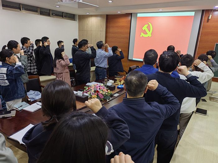 院党总支副书记、纪检委员崔振虎带领大家认真学习了《党的二十大报告第十五条:坚定不移全面从严治党,深入推进新时代党的建设新的伟大工程》《习近平总书记关于政法工作的重要指示精神》(《 人民日报 》 2022年1月16日 第 01 版)《习近平:继承和发扬党的优良革命传统和作风 弘扬延安精神》(《求是》2022年第24期)、习近平总书记给中国农业大学科技小院的学生的重要回信精神、《中国共产党章程》《中国共产党纪律处分条例》《中国共产党廉洁自律准则》等文件,对《关于开展“510”思廉月活动的通知》《关于2023年“五一”、“端午”期间严明相关纪律要求的通知》等文件进行了传达,观看了《操弄执法权“放贷”谋利的执行局长》廉政警示视频。全体党员重温了入党誓词。