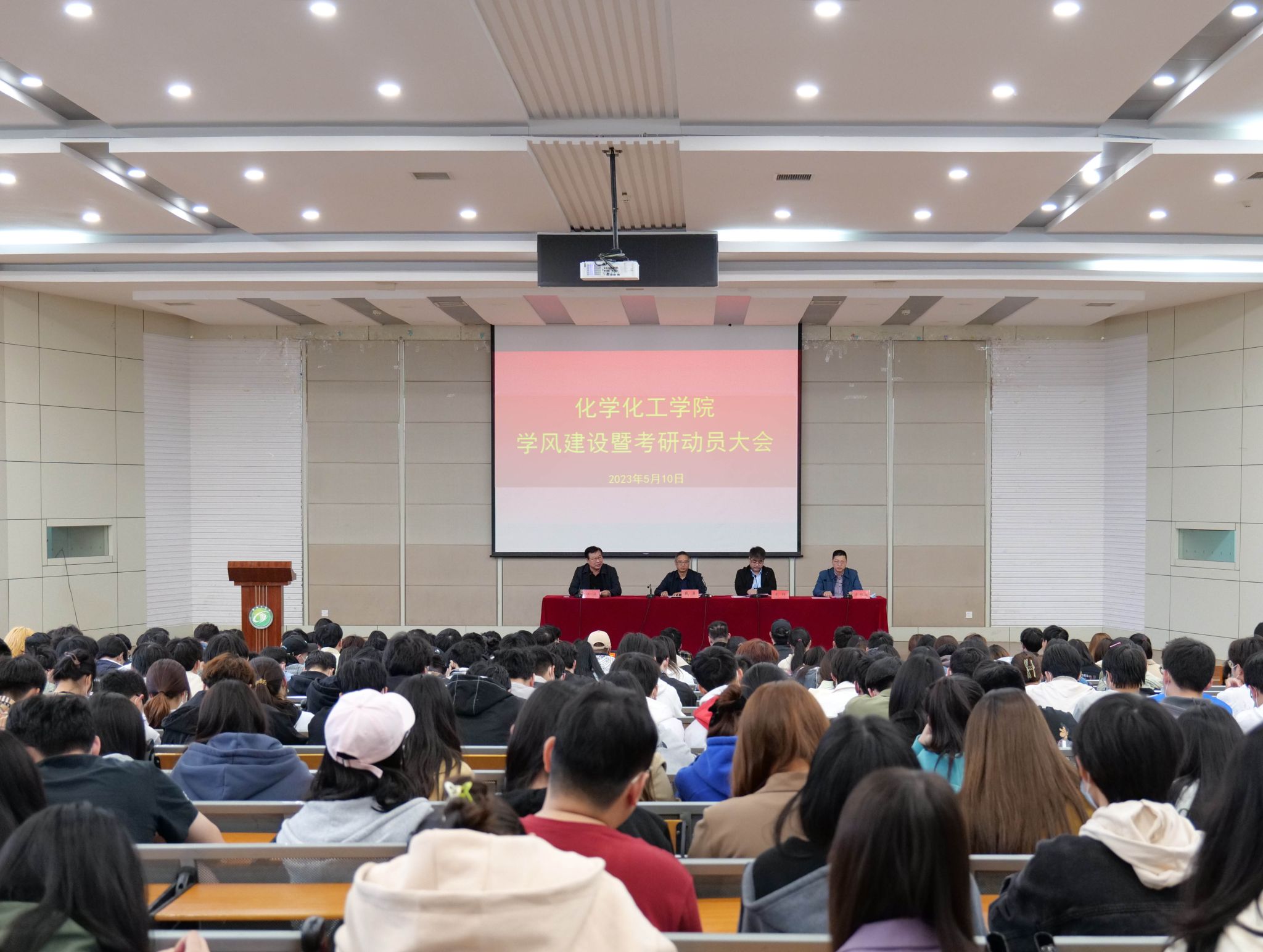 为全面推动学院学风建设,激励青年学子勇攀高峰,营造浓厚的考研学习氛围,5月10日,化学化工学院在化工楼报告厅召开学风建设暨考研动员大会。院领导,各科室、专业系负责人,全体辅导员及学生代表等500余人参加。会议由学院党委副书记庞辉主持。