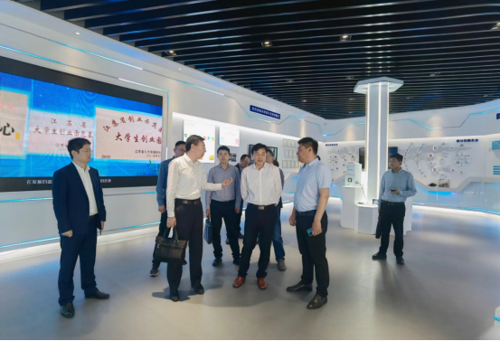 来宾参观了园区的重点科技成果推介展区、入驻企业办公区及综合服务工作站,并对企业孵化、人才培养、产教融合等情况进行了调研。