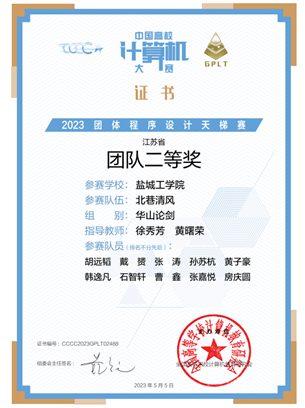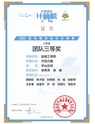 我校信息工程学院经过选拔的20名队员,在学院教师黄曙荣、徐森、徐秀芳的悉心指导下积极组织训练,锻炼选手的分析问题和算法设计能力,提升队伍的竞争力和契合度,最终在本次赛事的线上比赛中取得佳绩。其中,“北巷清风”队在全国总决赛“华山论剑”组中荣获团队三等奖、江苏省团队二等奖,“代码力量”队荣获江苏省团队三等奖。同时,2020级计算机科学与技术专业戴赟、2020级人工智能专业张涛和2021级人工智能专业黄子豪三位同学荣获全国总决赛个人三等奖。
