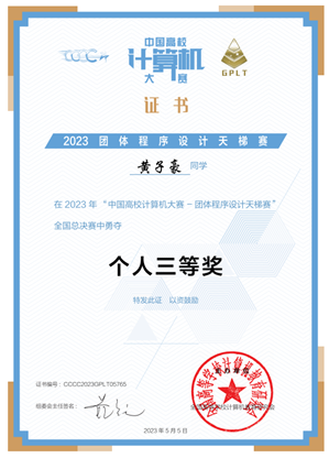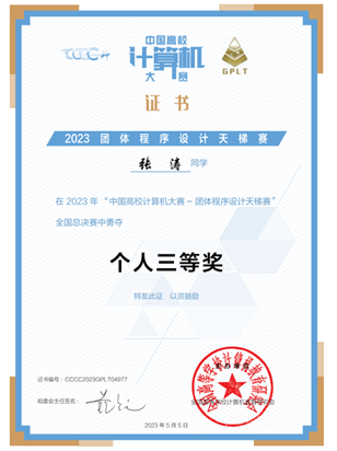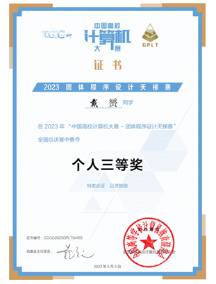 “中国高校计算机大赛—团体程序设计天梯赛”是由教育部高等学校计算机类专业教学指导委员会、教育部高等学校软件工程专业教学指导委员会、教育部高等学校大学计算机课程教学指导委员会、全国高等学校计算机教育研究会于2016年创办的国内程序设计领域认可度较高的学科竞赛,已连续多年被列入“全国普通高校学科竞赛排行榜”。团体程序设计天梯赛旨在提升学生计算机问题求解水平,增强学生程序设计能力,培养学生的团队合作精神,提高大学生的综合素质,同时丰富校园学术气氛,促进校际交流,提高全国高校的程序设计教学水平。全国团队一、二、三等奖的获奖比例分别为5%、10%、15%。