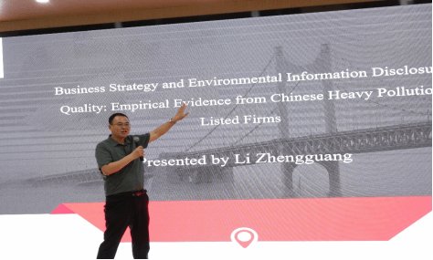 副院长李争光副教授作高水平论文发表报告,从研究背景、研究假设、实证研究、稳健性检验、进一步分析、研究结论等方面分享题为《Business Strategy and Environmental Information Disclosure Quality: Empirical Evidence from Chinese Heavy Pollution Listed Firms》的论文。重点讲述了论文选题的构思、研究背景的撰写、文献如何有效梳理、中介效应模型的正确使用等一些细节问题。他认为需要仔细研读顶级期刊的论文,悟透写作思路和方法,多与身边同行交流,才有可能撰写出高水平的论文。