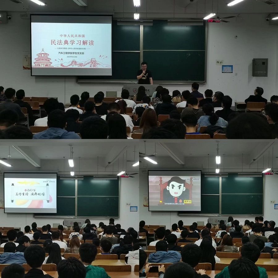 5月29日,汽车工程学院组织学生党员开展民法典学习。学生党支部书记孙进解读了《民法典》出台的重大意义和相关法律法规。会上,党员们集中观看了民法典动漫宣传视频,充分领悟了颁布《民法典》的重大意义,大幅提高了政治站位和法律意识,切实增强了学习贯彻《民法典》的思想自觉和行动自觉。